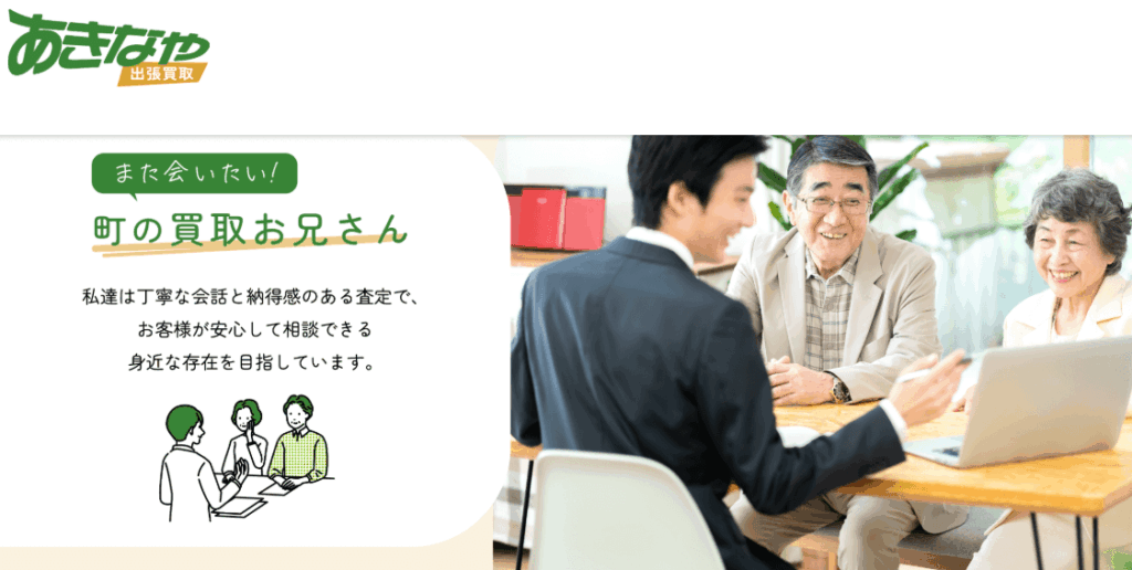 あきなやは自宅訪問型の出張買取をメインにしており、査定から買取成立までを一度で完結できる点が特徴です。