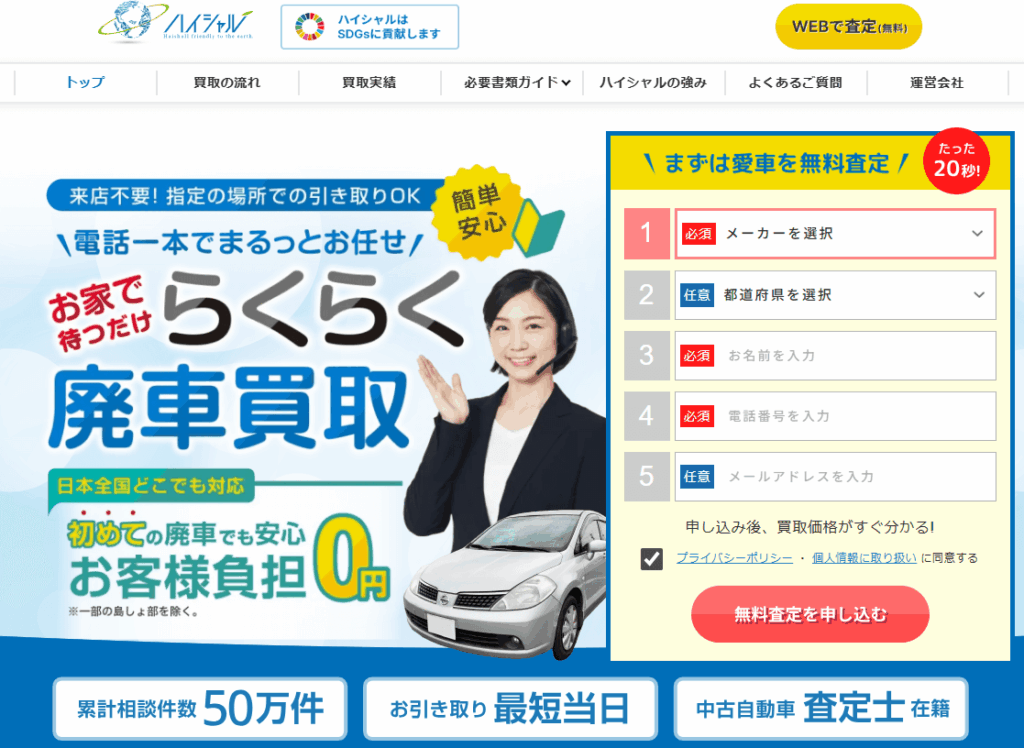 そんな悩みを解消してくれるのが、ハイシャルという廃車買取サービスです。